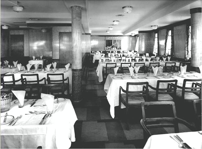 With all of the lower decks nearly gutted from R deck and down, Diner’s Club, the initial lessee of the ship, was to convert the remainder of the vessel into a hotel. Diners Club Queen Mary dissolved and vacated the ship in 1970 after their parent company, Diners Club International, was sold, and a change in corporate direction was mandated amidst the conversion process. Specialty Restaurants, a Los Angeles-based company that focused on theme based restaurants, took over as master lessee the following year. During this conversion, the plan was to convert most of her first and second class cabins on A and B decks only into hotel rooms, and convert the main lounges and dining rooms into banquet spaces. On the Promenade Deck, the starboard promenade would be enclosed to feature an upscale restaurant called Lord Nelson's and café called Lady Hamilton's, which would be themed like early 19th century sailing ships. The famed and elegant Observation Bar was redecorated as a western themed bar. A post war feature of the ship, the first class cinema, was removed for kitchen space for the new Promenade Deck dining venues. The first class lounge and smoking room were reconfigured and converted into banquet space, while the second class smoking room was subdivided into a wedding chapel and office space. On the Sun Deck, the elegant Verandah Grill would be gutted and converted into a fast food eatery, while a new upscale dining venue was created directly above it on the Sports Deck in space once used for crew quarters. The second class lounges were expanded to the sides of the ship and used for banqueting. On R deck, the first class dining room was reconfigured and subdivided into two banquet venues, the Royal Salon and the Windsor Room. The second class dining room was subdivided into kitchen storage and a crew mess hall, while the third class dining room was initially used as storage and crew space. Also on R deck, the first class Turkish bath complex, the 1930s equivalent to a spa, was removed. The second class pool was removed and its space initially used for office space, while the first class swimming pool was used for hotel guests. Combined with modern safety codes and the structural soundness of the area directly below, the swimming pool would eventually be drained and taken out of use. Other than the quarters of the Captain and other high ranking officers (which can now be seen as part of the self-guided museum tour), no crew cabins would remain intact.