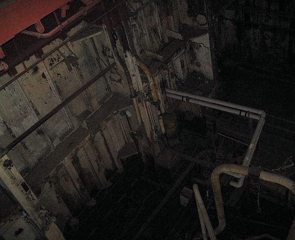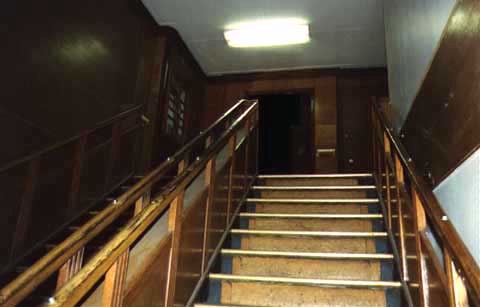 In one of the very few examples left on the ship of life in the Third Class, or Steerage, accommodations, the Third Class stairways still exist at the very front of the ship, and are still available to be used by guests getting down to staterooms located in the front of the ship. Of course, none of the Third Class staterooms are still intact, and all have instead been combined with other rooms to create much nicer and comfortable accommodations. In the days that the Queen Mary was sailing, all Third Class accommodations and amenities would have been located at the front of ship, as that is generally considered the least comfortable place to be on rough seas. First Class would have been located mid-ship, as the most stable place during rough seas, with Second Class being located at the rear of the ship, which would have been a bit more comfortable than the front during rough seas. You can see by this picture, how simple and plain the Third Class stairways were. |