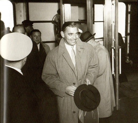 This picture was taken of the much loved film actor, Gary Cooper, on board the Queen Mary at one of the staircases leading from the enclosed Promenade Deck up to the Sun Deck. These stairs are quite easy to spot whilst on board the ship. |