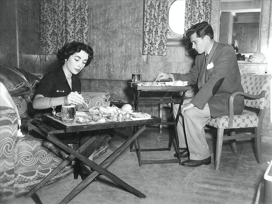 Elizabeth Taylor and Conrad Hilton enjoying dinner at the Verandah Grill on board the Queen Mary. |