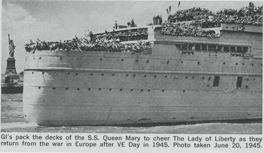 On August 30, 1939, the Queen Mary departed Southampton, sailing via Cherbourg, France, bound for New York. Little did anyone aboard know that this would be the great Queen’s last peacetime voyage, for the very next day the Nazis invaded Poland. On the 31st the captain was informed that for security reasons he was to run a zigzag course across the Atlantic and operate under blackout conditions in order to elude German submarines. Amongst the celebrities on board were Bob and Delores Hope, who was travelling solely as a passenger, and was not on board as an entertainer. It is said that that he continuously made light, even fun of the situation, and that it was not well received, especially by the British passengers. Most passengers were very apprehensive for the next four nights as all exterior lights were extinguished, lookouts were posted around the ship, and the helmsman continually steered a zigzag course, making the ship a difficult target for a torpedo. After four worrying nights, her passengers finally arrived safely in New York on Monday, September 4, whereupon all further crossings were cancelled, and the Queen Mary was put on mothballs for the next 6 months, as decisions were made about how she could best serve the war effort. Joining her in mothballs on New York's once bustling West Side Piers, were her running mate, the Queen Elizabeth, her chief rival, the Normandie and her older sister, the Mauretania. |
