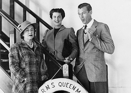 Fred Astaire traveled frequently on board the Queen Mary as well, often to visit his sister, Adele, who, after retiring as Fred's first dance partner, married the son of a Duke, and moved to Ireland where she resided at Lismore Castle. Fred and his family traveled often to visit his sister and her family. The picture below was also taken on one of the wooden stairways that connected the Promenade Deck and the Sun Deck. A large version of this picture can be seen on board today, right next to where it was actually taken. |