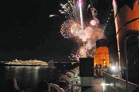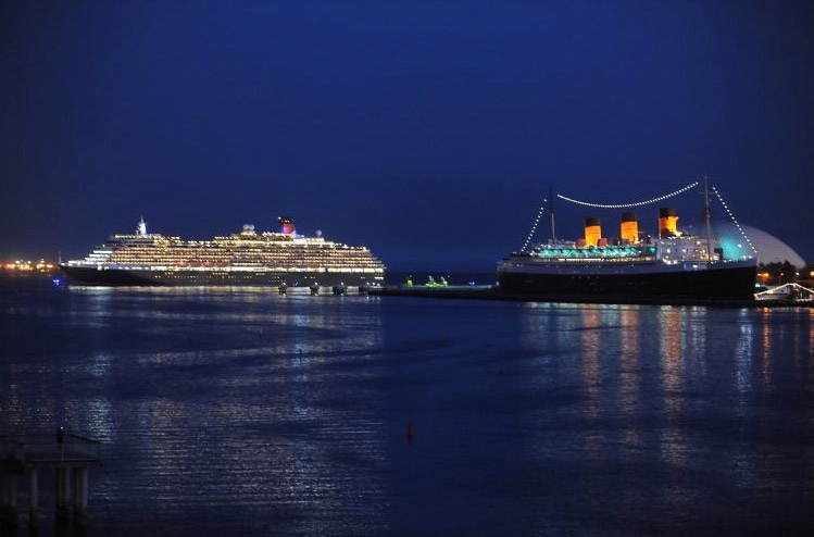 With the great success of the Queen Mary 2, Cunard commissioned two more ships. These would not be true ocean liners, like their flagship sister, but they would continue the elegance and standard of "White Star Service" that has come to be expected by passengers traveling on Cunard. The first ship would be named "Queen Victoria", finally allowing Cunard to have a ship named after their original "England's Greatest Queen" plan. Queen Victoria would be followed a couple of years later by her twin, Queen Elizabeth. As the original Queen Elizabeth (the running mate of Queen Mary) had been named after the then current Queen Elizabeth (who is now referred to as "the Queen Mother", but did bear the same first name as her long-reigning daughter), the QE2, was technically named after that original ship, and not named for England's current reigning monarch. So, to honor the current Queen, the new ship was simply dubbed "Queen Elizabeth", allowing for the current Queen to have a namesake ship that was truly named for her. In March of 2011, the new Queen Victoria visited Long Beach to salute her elder relative. And in March of 2013, the new Queen Elizabeth also visited to pay tribute. During both meetings, the skies were filled with fireworks to celebrate the occasion. |