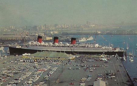 The Queen Mary arrived Saturday at her permanent residence in exile amid a tumultuous welcome that was bigger than any celebration in Southern California since the day World War ll ended 22 years ago…. Tens of thousands – perhaps a million or more — on land, sea and in the air greeted the Queen as she glided along the coast and past the Long Beach Harbor breakwater at 10 a.m. on the last mile or so of the 39-day voyage from England, the home she will never see again. About 1,200 passengers, paying $8,000 each, took the final voyage. Being too wide for the Panama Canal, the Queen Mary sailed around the tip of South America to reach Long Beach. There is a tinge of sadness in Mr. Trimborn's article, and I can't help but echo his sentiment. Retirement from an illustrious career always comes with a touch of sadness for what was, and what will never quite be again. But we feel extremely grateful that the City of Long Beach made it possible for this very special ship to continue to live, and to welcome so many to her decks and her rooms... standing as a living testament to a bygone era that so many of us can only dream about. That time is gone now, but thankfully the Queen Mary is not. |