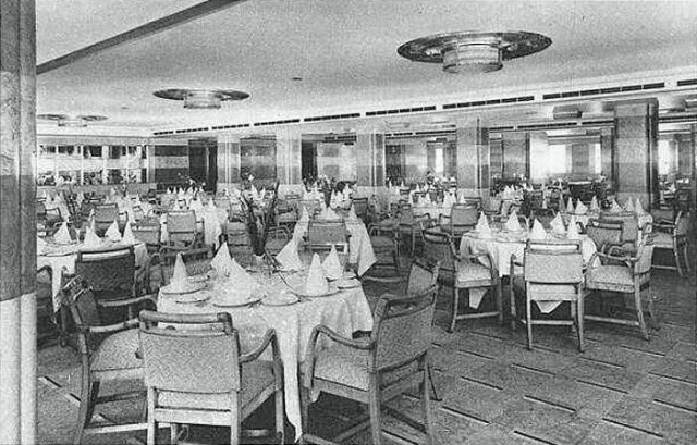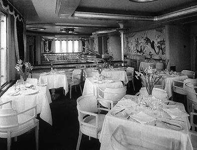 During 1936 to 1939, Queen Mary enjoyed great popularity as the flagship of the great Cunard White Star Line. At her launch in 1934, King George V dubbed her as the “Stateliest ship afloat.” However, many testified that life aboard the newest and fastest North Atlantic liner was anything but staid, for it was well known that her five bars located on Promenade Deck alone were filled with revellers most of the day and night. Evenings were very much a gala affair for the first class passengers. With the parade of gowns, jewels and men in the finest of formal attire, it was said that the First Class passengers (or "Cabin Class", as it was eventually called) looked as if they were dressed for an event at Buckingham Palace. Second Class (known as "Tourist Class") was equally well presented, whilst Third class (or "Steerage") had a more casual atmosphere. However, no matter the class, for each passenger on a voyage on the Queen Mary, it was an event! (It should be noted that during Queen Mary's career, Cunard changed the names on the classes of service. At one point, First Class was only known as "First Class", with Second Class being called "Cabin Class" and Third Class being called "Tourist Class", perhaps in an attempt to make "Steerage" seem less dismal. So technically, the correct names for the class levels all depends on which years are being referred to.) |