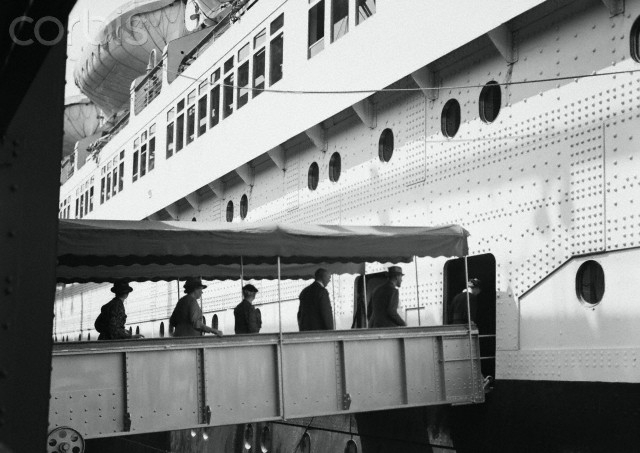 This was not just simply a ship that transported people across the ocean, this was an experience unrivaled by any other. The food was world class, the accommodations were five star, and the service was impeccable. People would often say that their favorite part of a European (or American) vacation was the time spent traveling there on the Cunard ships. Before we move on to the last chapter of her story, and her permanent transfer to Long Beach, California, we'd like to share with you some vintage pictures taken of the Queen Mary during her "Golden Age" of transatlantic crossings. |